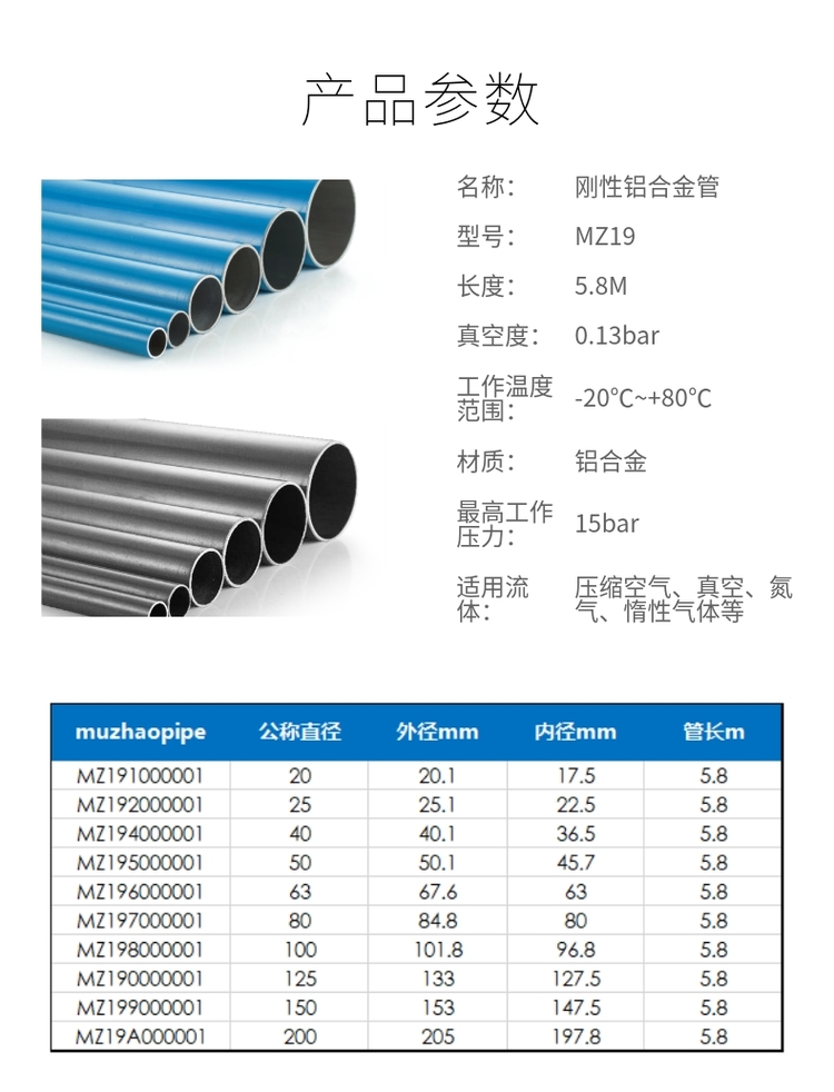 適合的流體:壓縮空氣、真空、氮氣、惰性氣體等;最高工作壓力為15bar;工作溫度范圍:-20℃~+80℃;真空度:0.13bar(絕對壓力);無縫擠壓鋁管(符合GB/T4437.1-2000標準);干凈空