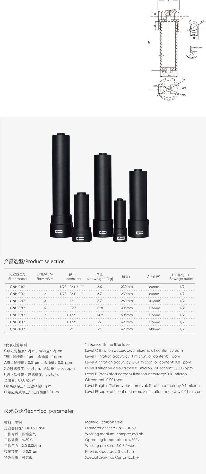 CNH系列碳鋼高壓精密過濾器(2.0~8.0Mpa)