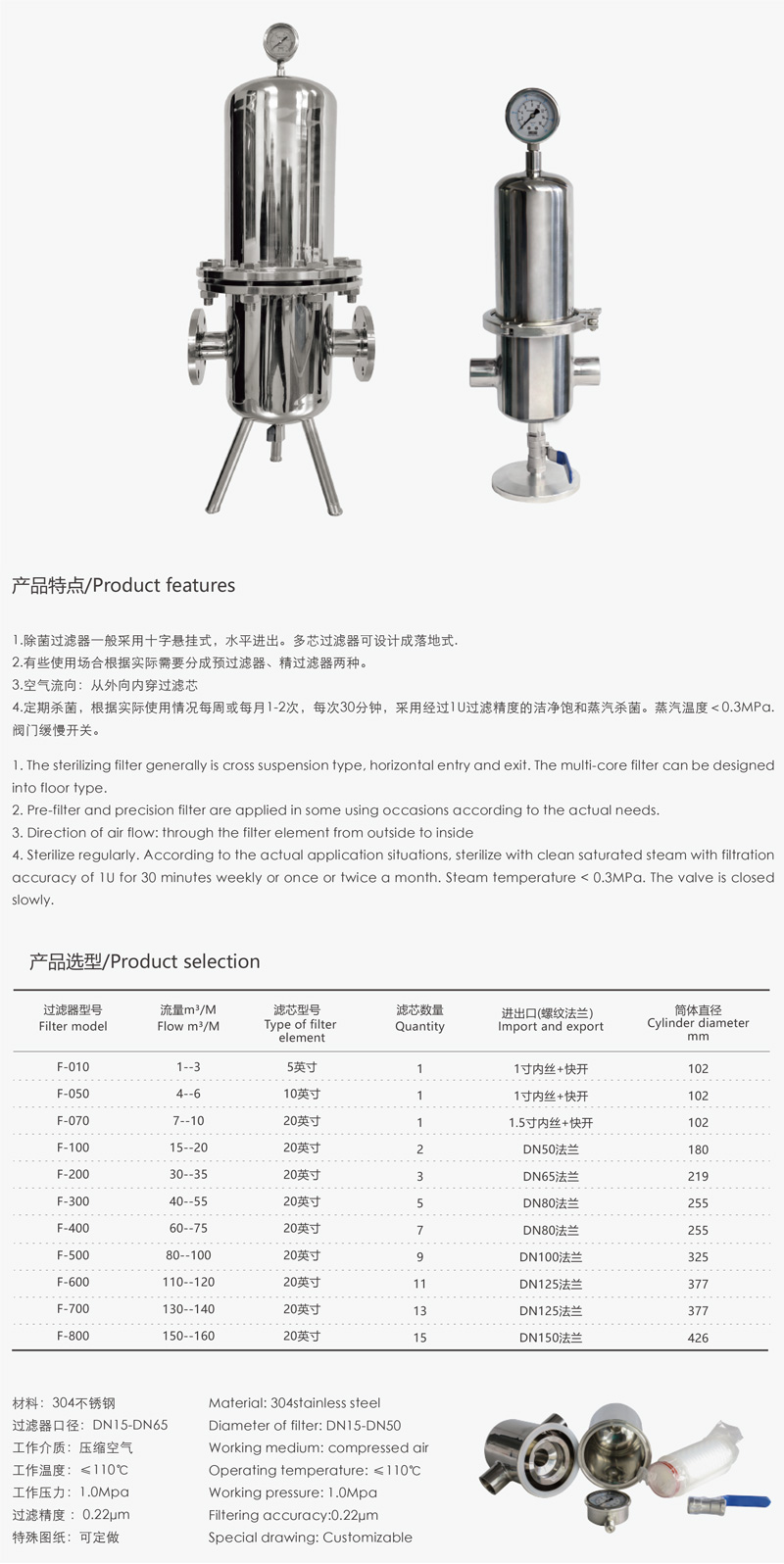 除菌過濾器主要是采用大比表面積,過濾精度為0.22um以上的微濾濾芯,主要用于防止空氣中的雜質和有害細菌、生產線、無菌室,引起水質、產品和無菌室環境的變化,滿足食品、生化、飲料、啤酒、醫藥、電子等行業的工業需要